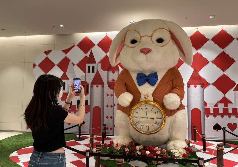 ▲SKM Park Outlets 高雄草衙特別打造會「呼吸」的巨型時光兔以及奇境花園,成為連假最具話題的親子打卡景點