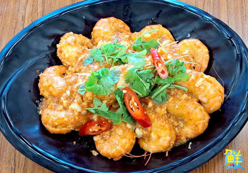 ▲經典檸檬蝦500元:金黃油亮的蝦殼包裹著飽滿彈牙的蝦肉,一上桌便飄出清新檸檬香氣。