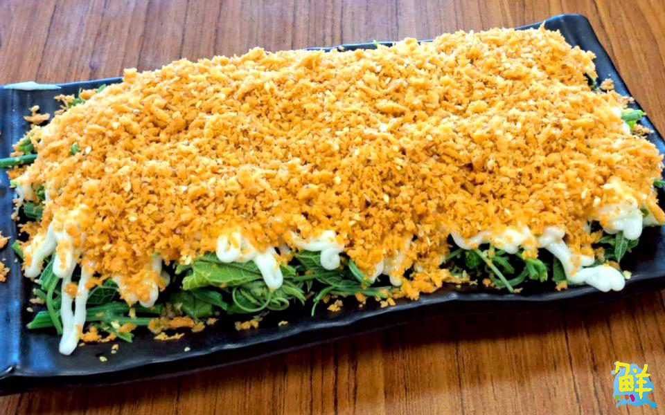 ▲沙拉龍鬚 150元:翠綠的龍鬚菜細長柔嫩,搭配特調美乃滋和酥脆素鬆,每一口都能感受到清脆爽口與香酥口感的完美融合。