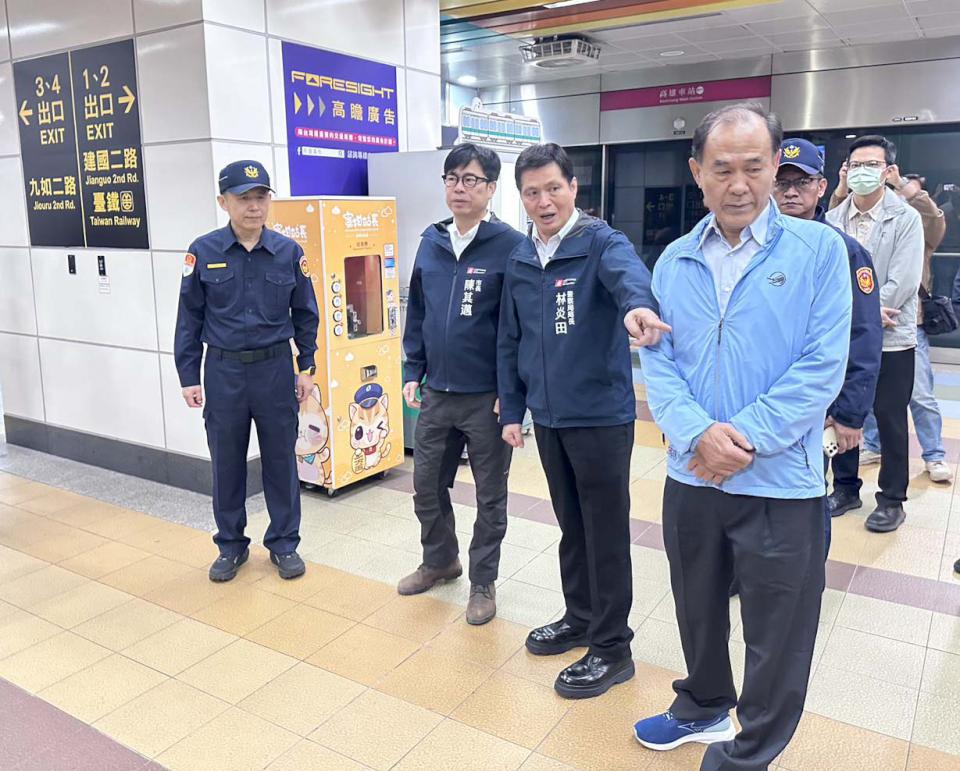 高市警局12月19日至23日動員6198名警力、支援80名加密巡邏捷運39站、輕軌38站、台鐵車站18處、公車轉運站8處等,保安警察大隊手持盾牌及長槍巡檢高雄捷運高雄車站、美麗島站、左營站等地,尖峰時段編排高捷隨車巡查任務,勤務指揮中心獲報同步周知捷運警察、分局等單位,落實通報、封鎖、壓制,結合義警、義交、社區巡守隊等,輔導活動主辦單位進用保全,並建立緊急應變機制,有效落實初步管制與通報,高市警局長林炎田說,因應跨年晚會,前鎮、鳳山、新興三分局長督導指揮,並出動空拍機及360度球型攝影機等設備蒐證及監測人流,即時引導疏散。圖/市警局提供、文/高培德