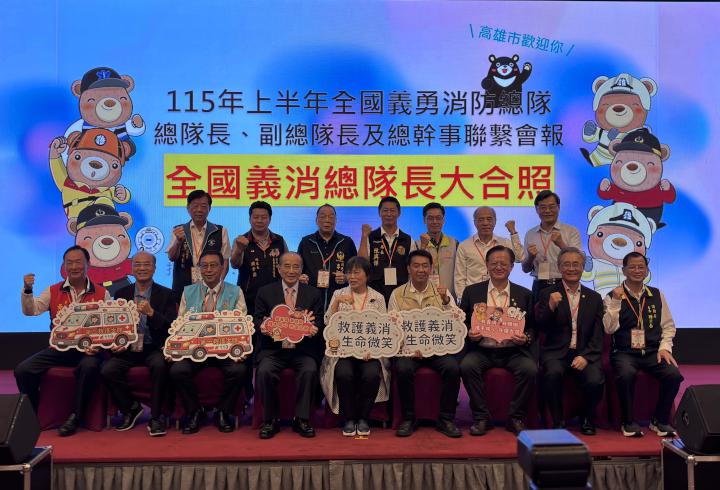 高市消防局與高市義勇消防總隊主辦115上半年度全國義消總隊總隊長、副總隊長及總幹事聯繫會報4月10日在高市舉行,內政部長劉世芳、消防署長蕭煥章、中華民國義勇消防聯和總會長、前立法院長王金平、高市義勇消防總隊長陳義永等人參與,會中高市分享經營發展經驗,各縣市代表提出多項議案,並決議115下半年度全國義消聯繫會報由台北市義勇消防總隊接棒,陳義永說,高市義消總從3449人增至6000人,114年7月中颱丹娜絲重創台南,68名義消7天協助修繕85棟民宅,10月花蓮馬太鞍溪堰塞湖溢流,11名營建、無人機、特搜義消前進災區5天搜救,全國體技能交流大賽勇奪1特優、3優等、4甲等,刷新歷年紀錄。圖/高市消防局提供、文/高培德