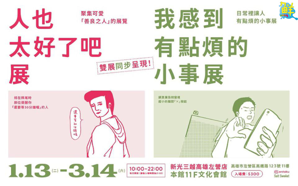 #高雄捷運報 #高雄在地媒體 #高雄新聞 #鮮新聞 #高雄新聞網 #鮮週報新聞網 #新光三越 #高雄左營店 #人也太好了吧展 #我感到有點煩的小事展 #東京策展團隊entaku #文化會館 #情感主題