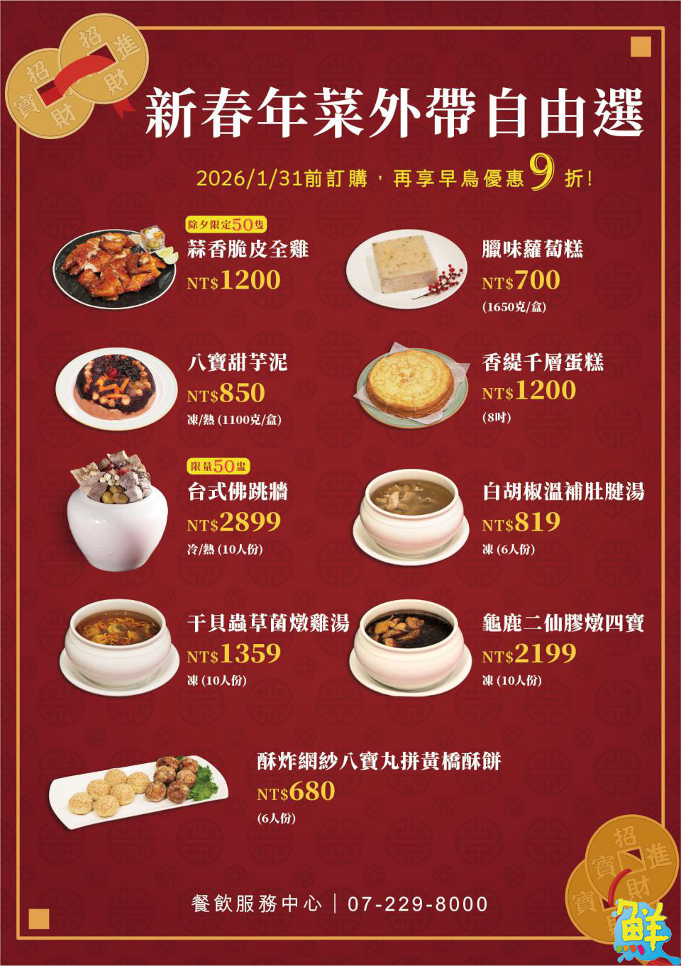 農曆新年即將來臨,麗尊酒店今年以「一口經典,喚醒高雄人的共同記憶」的情懷為主軸,透過飯店內多間餐廳於春節期間推出的節慶筵席與年菜外帶服務,邀請市民在不同形式的餐桌上,重新找回屬於自己的年味。