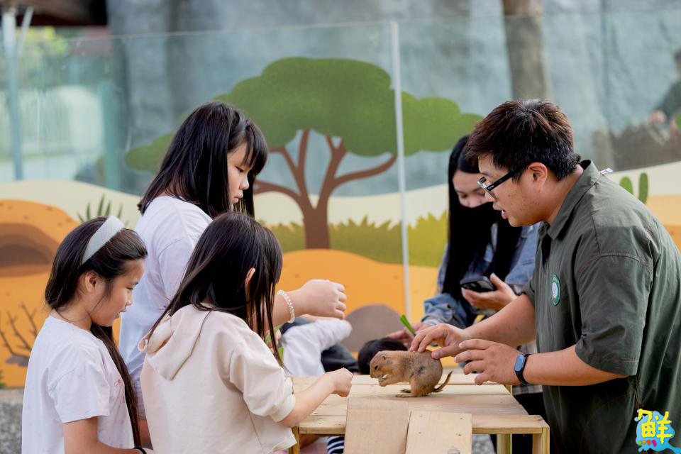 ▲大小朋友在飼育員引導下與土撥鼠互動