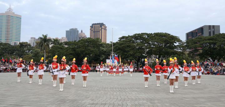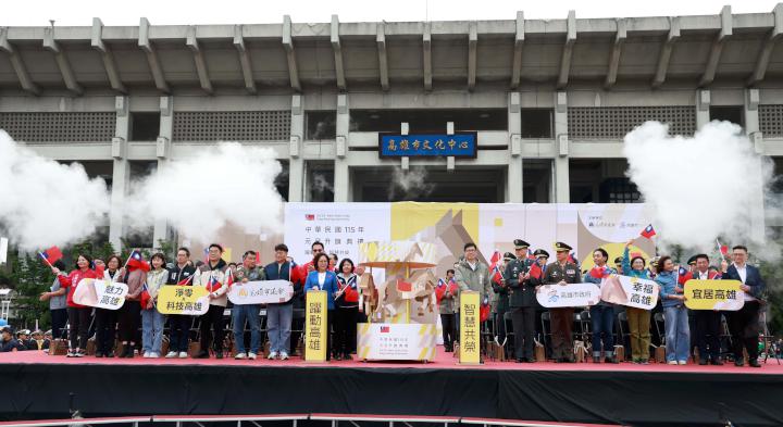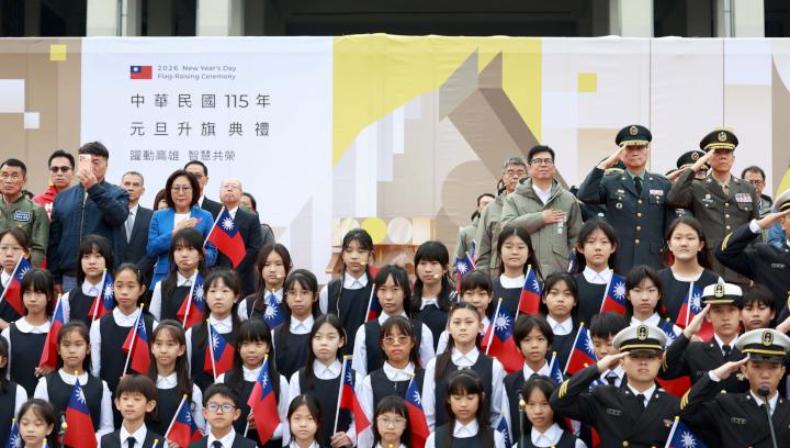 高雄市議會與高市府合辦高市各界慶祝中華民國115年元旦升旗典禮1月1日在文化中心舉行,主題定為「躍動高雄、智慧共榮」,警察局觀光騎警隊開放合影留念,國軍展示輕型戰術輪車及雲豹八輪甲車等武器裝備,高雄女中樂儀隊、三軍人偶、海軍陸戰隊樂儀隊操槍表演接力獻藝炒熱氣氛、全國音樂比賽常勝軍苓雅區四維國小、海軍官校海韻合唱團領唱國歌,市長陳其邁、市議會議長康裕成領軍致敬國旗,同時祈福新年。