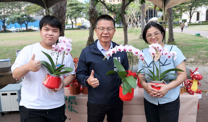 農業局長姚志旺走訪木馬花卉展區,欣賞花藝設計,並與花商互動合影,也關心各攤位展售情形,他說,神農市集轉型結合農業、設計與生活平台,透過展示花卉、料理示範及小農展售等,帶動農業貼近生活,未來續透過策展及場域經營,強化農產業形象與市場能見度。
