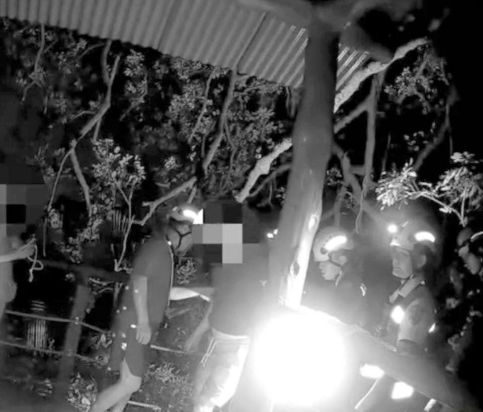 高市42歲蘇姓男子爬柴山途經翠嶺坪涼亭時不慎遭樹枝砸中,造成頭部撕裂傷,鼓山分局鼓山派出所警員鍾岡玲獲報到場,會同保七總隊及鼓山消防分隊警消摸黑搜救一小時覓得傷者,初步包紮止血並後送就醫,所幸傷勢無大礙,警方提醒民眾登山健行留意天候變化,並隨身攜帶照明及通訊設備,如突發狀況即時求助。圖/鼓山分局提供、文/高培德