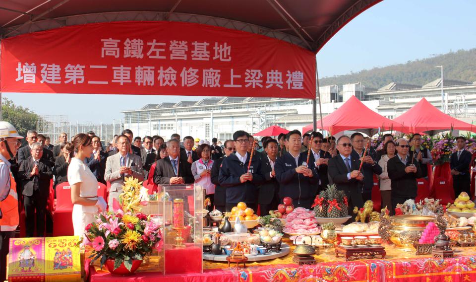 台灣高鐵左營基地增建第二車輛檢修廠1月28日上樑,交通部長陳世凱、台灣高鐵董事長史哲、高雄市長陳其邁等人上香參拜並鎖上金螺絲,見證樑柱緩緩上升至定位,祈願工程如期如質完成,預計2027年12月啟用,作為N700ST及700T 列車停靠日月檢修及清洗作業,維修量能可望從38組增至47組,可容納列車組數從44組提升至50組。