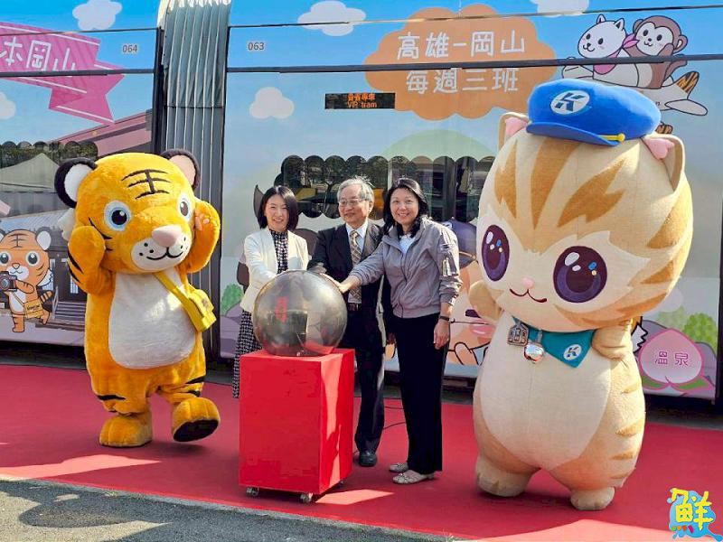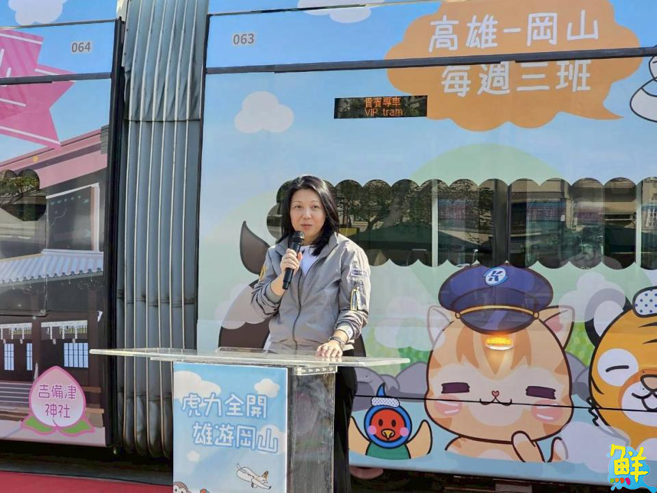 為深耕南台灣旅遊市場並強化台日觀光連結,台灣虎航與高雄捷運公司、日本岡山縣三方聯手打造的彩繪輕軌列車,於今(22)日高雄輕軌前鎮機廠舉行首航儀式,由台灣虎航董事長黃世惠、高雄捷運楊岳崑董事長以及日本岡山縣副知事尾﨑祐子共同主持,高雄市政府觀光局亦派代表與會見證。這輛充滿話題的彩繪列車,將於明(23)日起至2月22日為期一個月限定巡迴高雄街頭,歡迎民眾踴躍前往搭乘,體驗與蜜柑、虎將、桃太郎同車共乘的驚喜旅程。