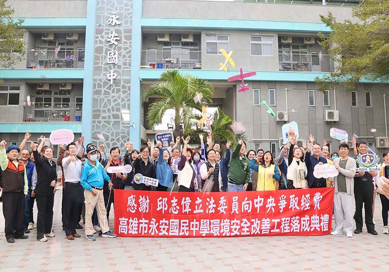 高市永安區永安國中教學大樓周邊鋪面暨環境改善工程1月17日啟用,入口意象、步行動線、排水設施同步升級,營造安全舒適學習環境。